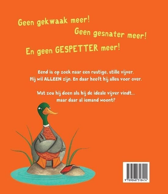 Geen gekwaak meer! Geen gesnater meer! En geen GESPETTER meer! Eend is op zoek naar een rustige, stille vijver. Hij wil ALLEEN zijn. En daar heeft hij alles voor over. Wat zou hij doen als hij de ideale vijver vindt... maar daar al iemand woont?